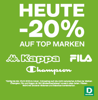Heute bis gibt es bei Deichmann -20% auf die Marken Kappa, Fila und Champion.